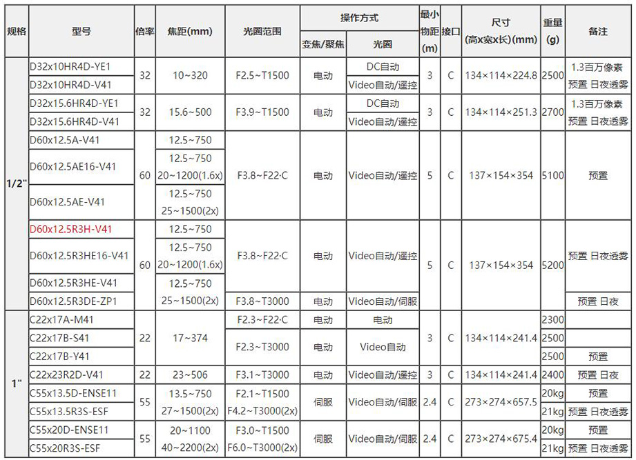 D32镜头系列是同级别中的对应1.3百万像素摄像机且兼具夜视功能的新款百万像素变倍镜头。